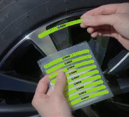 - Montavimas paprastas. Tiesiog nuvalykite paviršių, kad jis išdžiūtų, nuimkite lipdukus nuo automobilio, nulupkite juos, užklijuokite ant ratlankio ir trumpai paspauskite, kad viduje neliktų oro. Rekomenduojama neplauti automobilio 24 valandas.