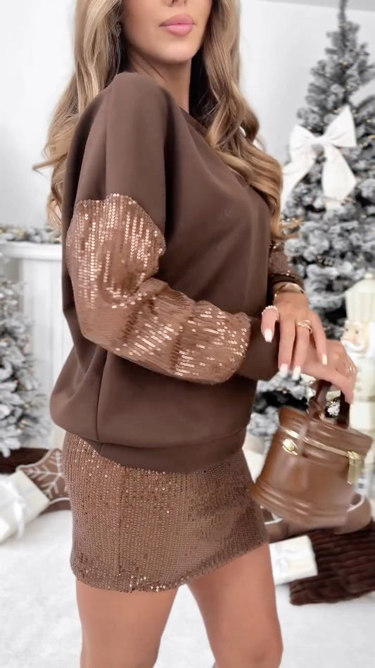 Ženski elegantni komplet za vsak dan z okroglim izrezom in svetlečim polkrilom-SI