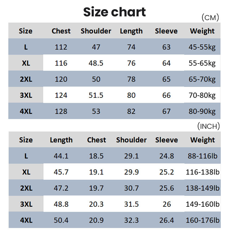 Μέγεθος: L, XL, 2XL L, XL, 2XL, 3XL, 4XL