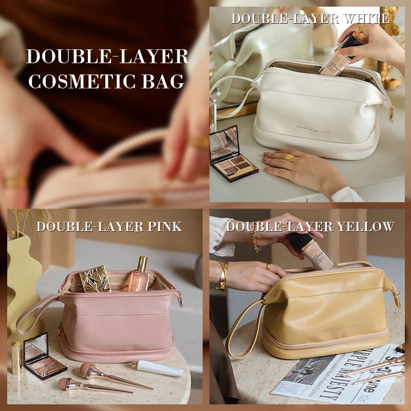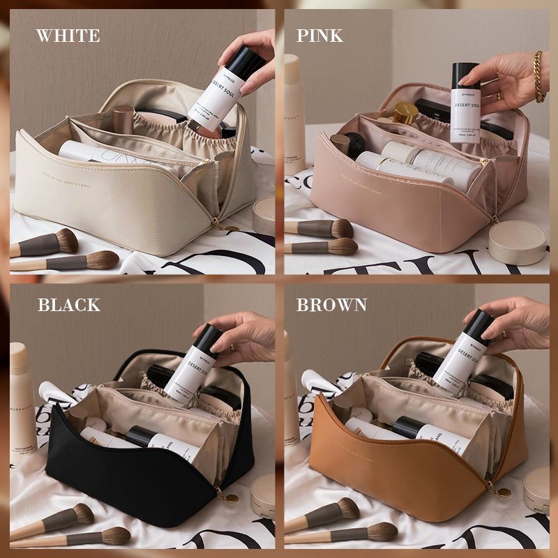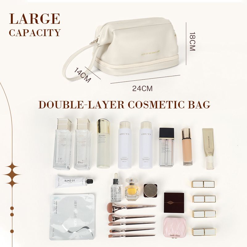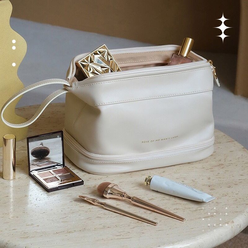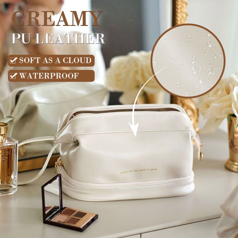 Dvojvrstvová kozmetická taštička z krémovej kože, ktorá je mäkká a prémiová ako oblak.