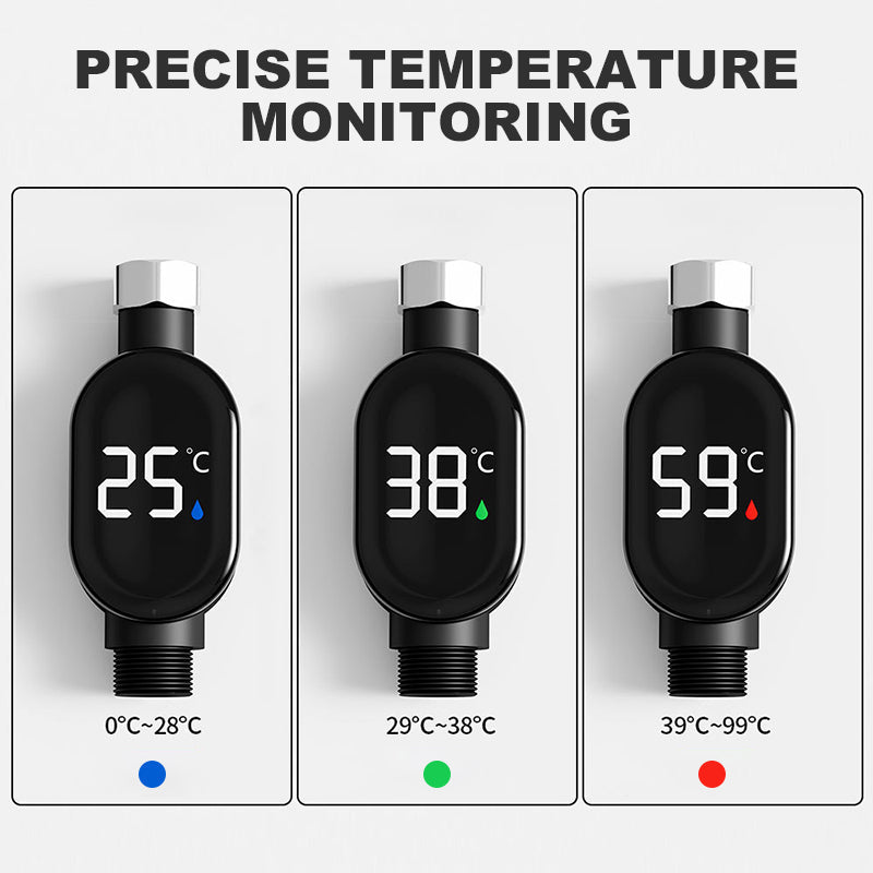 PRESNÉ MONITOROVANIE TEPLOTY: Poskytuje údaje o teplote vody v reálnom čase. Modré svetlo indikuje nízke teploty, zelené optimálnu teplotu a červené príliš horúcu vodu, čo zaisťuje pohodlné a bezpečné kúpanie.