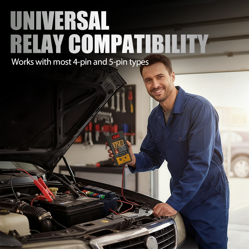 UNIVERSALUS SUDERINAMUMAS – Šis testeris, sukurtas maksimaliam universalumui, yra universaliai suderinamas su dauguma standartinių 4 ir 5 kontaktų automobilių relių. Tai pašalina poreikį naudoti kelis specializuotus testerius ir užtikrina, kad būsite pasiruošę įvairiems diagnostikos scenarijams.
