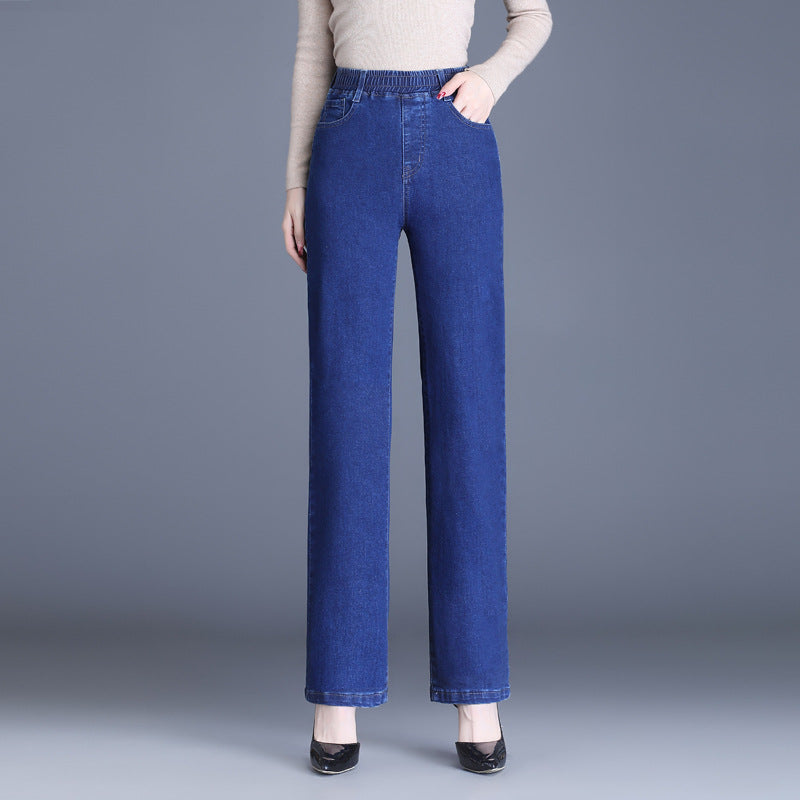 Pristatome mūsų moteriškus elastingus juosmens džinsus – tobulą komforto ir stiliaus derinį jūsų kasdieniam garderobui.