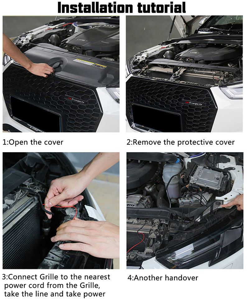 - Uporaba: Napajalni kabel priključite na avto, ne da bi odstranili masko hladilnika. Za pomoč pri namestitvi lahko prosite tudi servis.