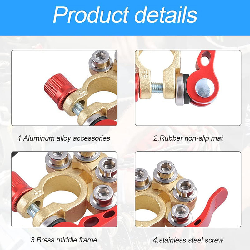 [4 KRYPČIŲ AKUMULIATORIAUS SPAUSTUVAS] Pagamintas iš aukštos kokybės žalvario ir plieno, atsparus korozijai ir pasižymi puikiu elektros laidumu, sumažindamas įtampos iškraipymus ir perdavimo nuostolius. Jame yra 4 prievadai keliems kabeliams prijungti, todėl laidų modifikavimas yra lengvesnis ir patogesnis.