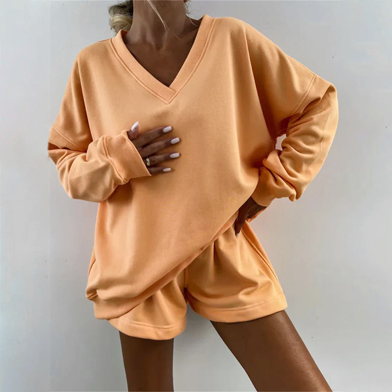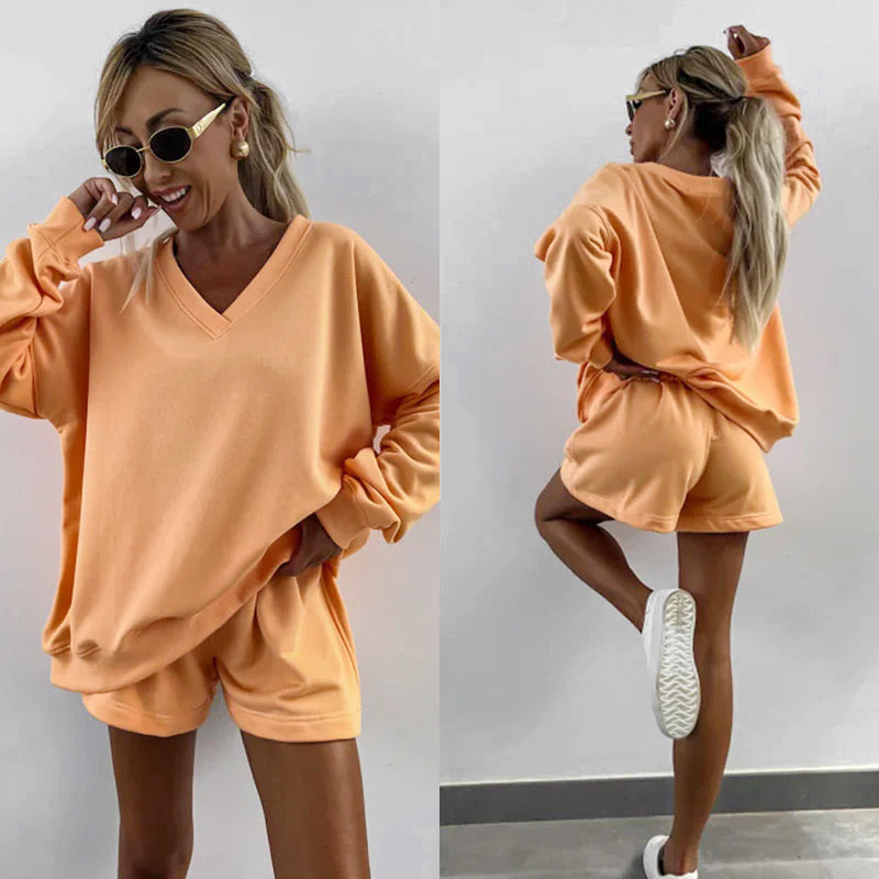 STILIŲ KOORDINAVIMAS – šis derantis rinkinys užtikrina lengvą stilių su derintu viršeliu ir šortais, puikiai tinkantis kasdienėms išvykoms, atostogoms ar poilsiui namuose.