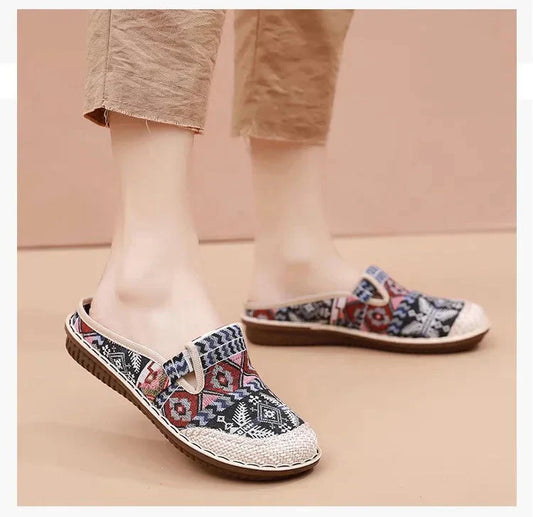 Παντόφλες από λινό που αναπνέουν με κορδέλα-GR