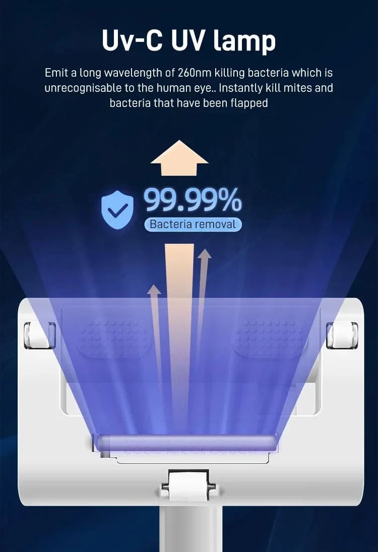 Το μηχάνημα καθαρισμού στρώματος έχει αναρρόφηση 12 kpa και κινητήρα 50 W. Η στοχευμένη ηλεκτρική σκούπα στρώματος αφαιρεί τη σκόνη και τη βρωμιά από τα υφάσματα και καθαρίζει σε βάθος το κρεβάτι, τα μαξιλάρια και το χαλί.