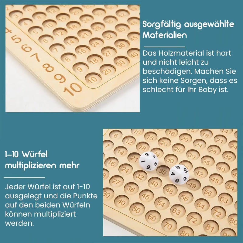 Rôzne matematické aktivity: Môžete vykonávať rôzne matematické cvičenia pomocou hier, ako je rytmické počítanie a násobenie. Široké možnosti použitia: Drevené násobilky sú ideálnym učebným materiálom pre materské školy, základné školy, škôlky atď. Vďaka svojej prenosnej veľkosti sa pohodlne používajú vonku, v triede aj doma.