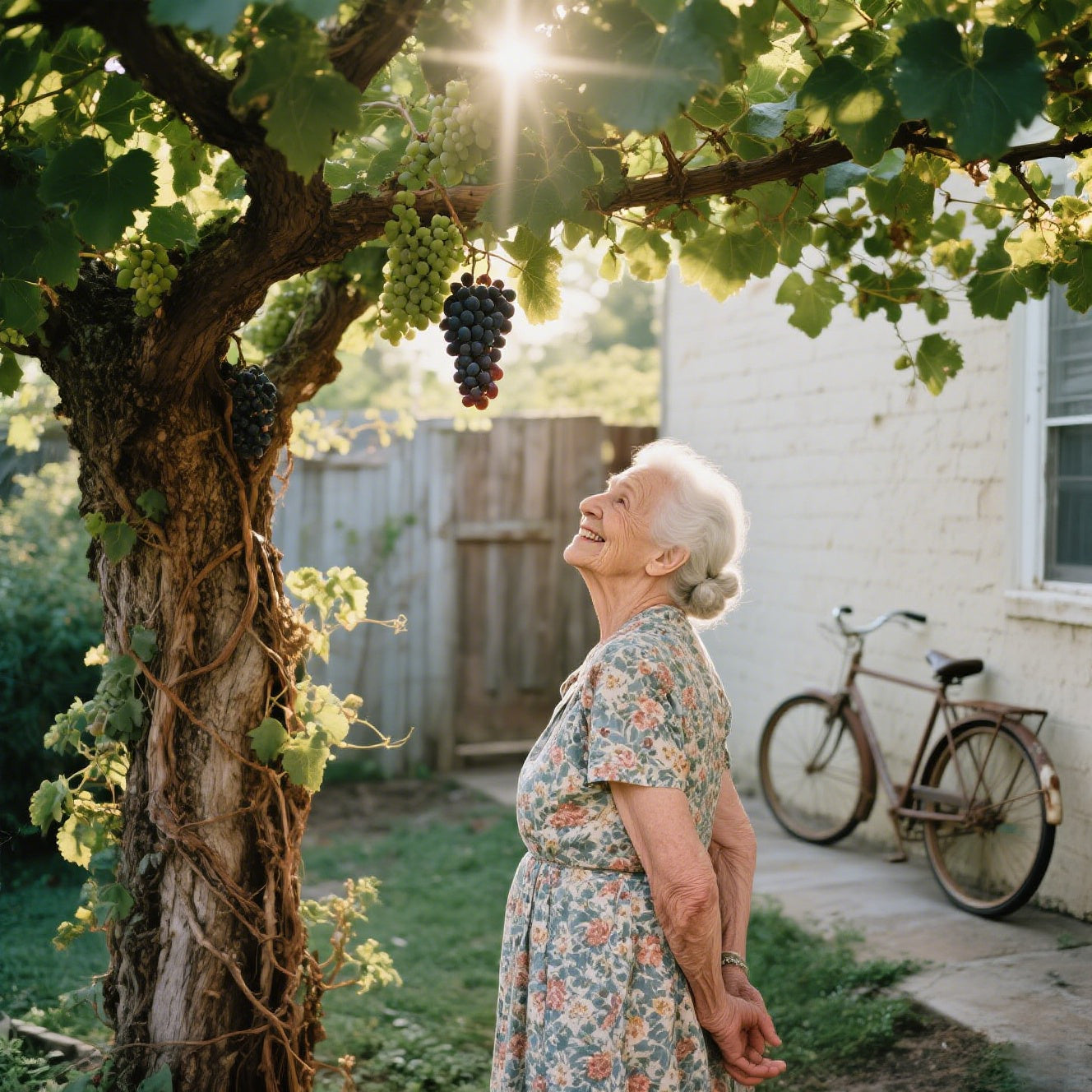 Σε 3-4 μήνες, βγαίνεις έξω (ή ρίχνεις μια ματιά στο μπαλκόνι) και το βλέπεις: τσαμπιά από παχουλά, μωβ-πράσινα σταφύλια να κρέμονται από το μικροσκοπικό σου δενδρύλλιο. Διαλέγεις ένα, το δαγκώνεις — γλυκό , ζουμερό, και αυτά τα μικροσκοπικά σποράκια; Μόλις που τα προσέχεις.